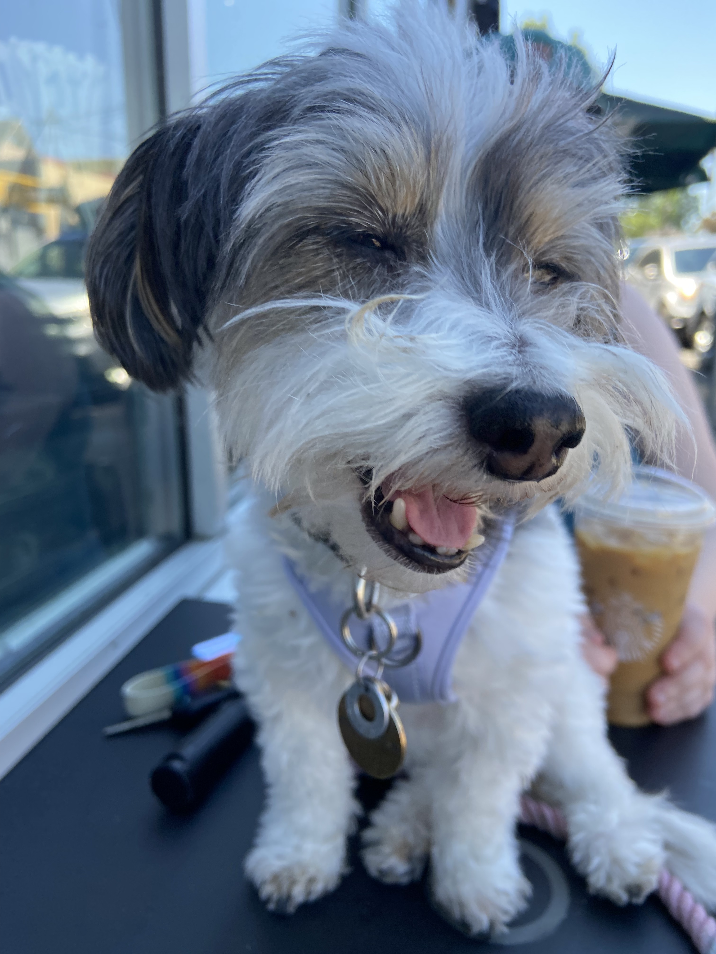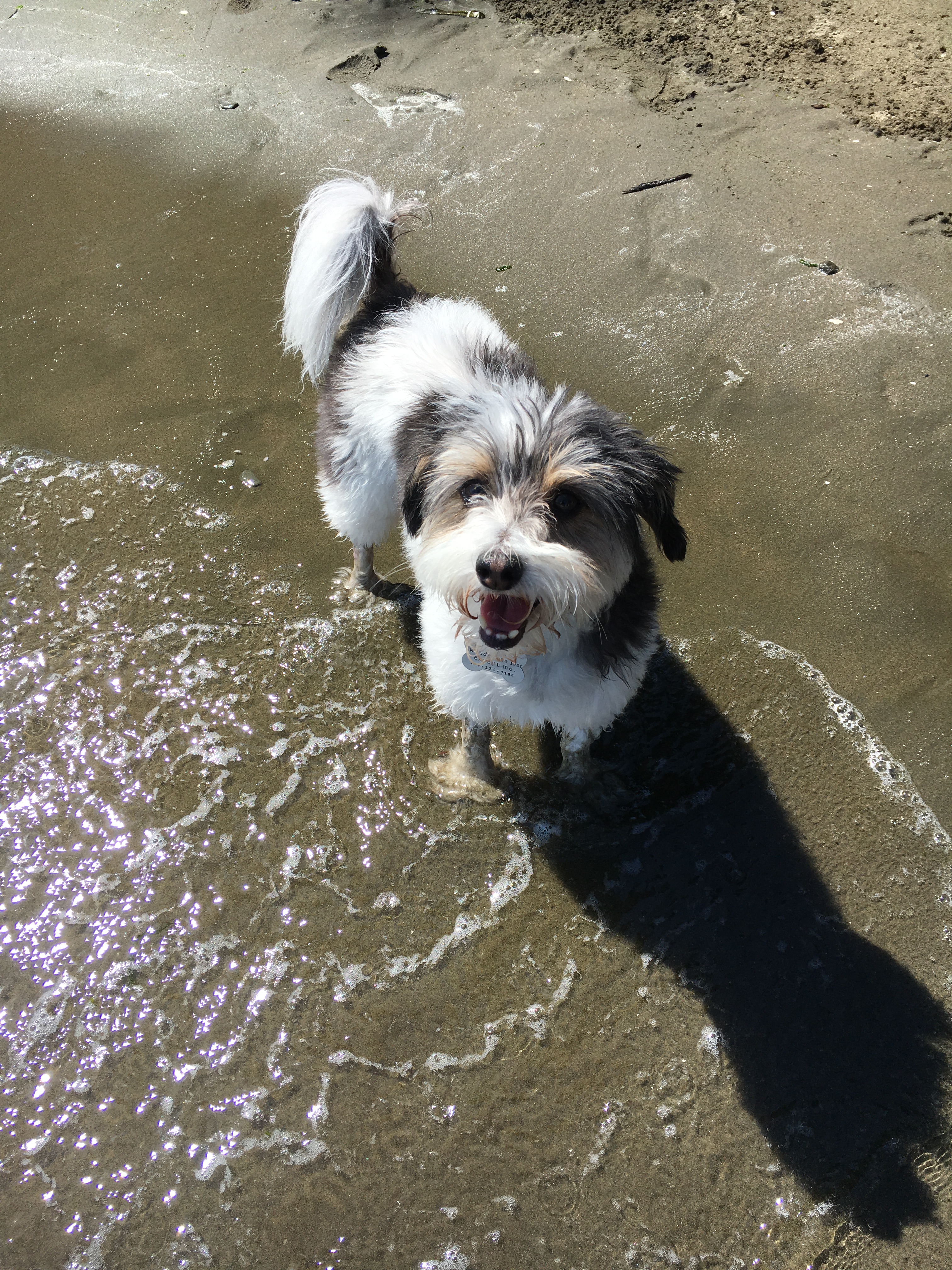 Bailey was a sunbeam. She wasn’t just a service dog. As if a service dog could ever be “just” the lifesaving love they encompass. She had a snaggletooth, no top teeth, and a grin to end all grins. She expressed her happiness with twirling and the occasional whine, especially as we pulled into her favorite place to work (Target). She loved chicken, burrowing in blankets, sleeping spine-to-spine with her human, and getting acquainted with elderly people. NASA was her nirvana, where old folks abounded. She had to say hi to each one, even though it wasn’t “professional”. When she witnessed an older woman take a fall, she was the first to abandon her perch and kiss the injured hand of the person she wanted to help. She’d snack with you, snuggle in tight spaces, and hide in your laundry basket. Can’t find Bailey? Call her name and she’d wiggle out from a piece of furniture, or jingle her way toward you, belly wet from sleeping in the shower.