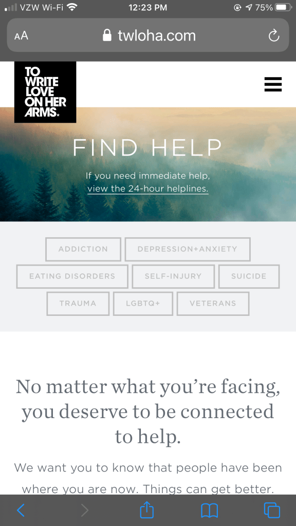 To Write Love on Her Arms Search Tool